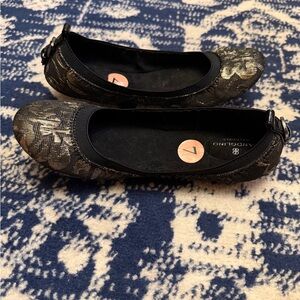 Step out in style with these Bandolino women's ballet flats. Featuring a chic black floral design, these shoes are perfect for any occasion. Comfortable and elegant, they are a must-have addition to your wardrobe.