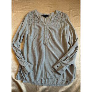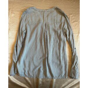 Bandolino Womens Blouse Sz Medium Long Sleeve Striped V Neck Blue White Preppy