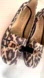 —Front gold buckle is leopard on one side and black patent on the inside.
