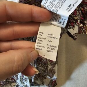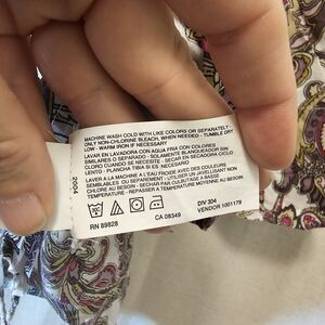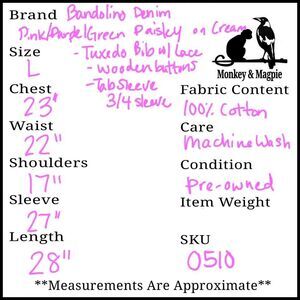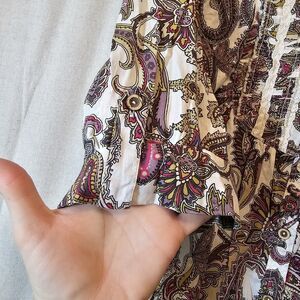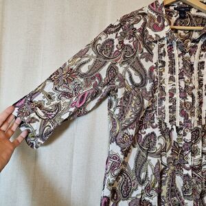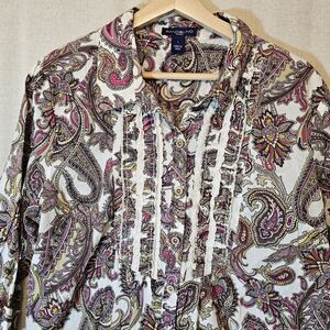 Bandolino Women's Button Up Paisley Pink Purple Tuxedo Bib Lace Detail 3/4 Large Wooden Buttons