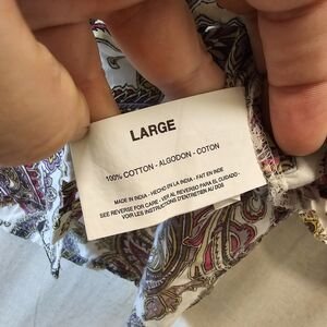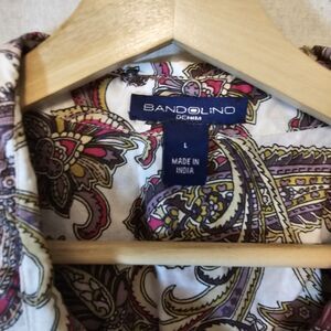 Bandolino Women's Button Up Paisley Pink Purple Tuxedo Bib Lace Detail 3/4 Large
