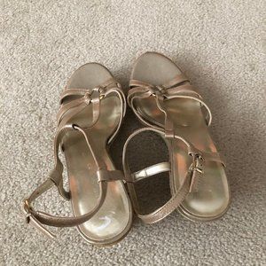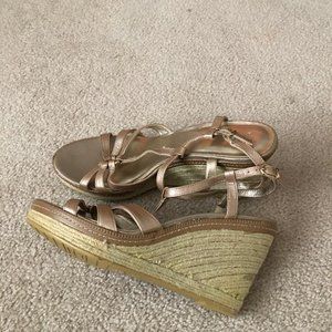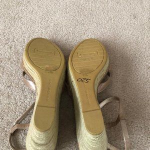 Approximately 1 inch platform and 4 1/4 inch espadrille wedge heel