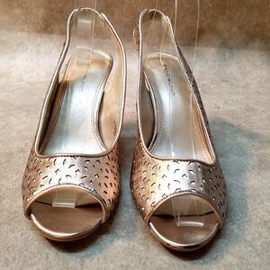 Bandolino Womens Jacque Size 8.5 Rose Gold Slip On Peep Toe Slingback Heels