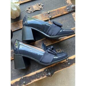 Bandolino Women's Korrar Navy Blue Bow Platform Penny Loafer Size 8 NWT Preppy