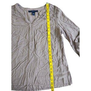 women's blouse, lightweight top, striped shirt, casual blouse, Bandolino blouse, size M top, long sleeve shirt, smocked blouse, cotton blouse, buttoned sleeves, pre-owned shirt