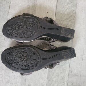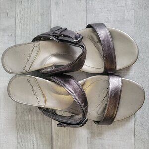 Bandolino Womens Metallic Wedge Sandals With Adjustable Buckle