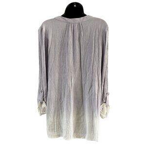 Bandolino Womens Top L Crinkled Tunic Button Front Purple/White Gradient Lightwe