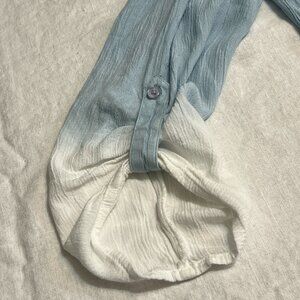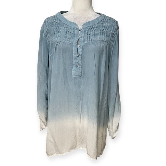 Bandolino Women's XXL Blue White Ombre Tunic Top Long Sleeve Pintuck Boho Peasan