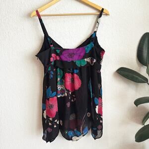 Bandolino Y2K Babydoll Top Chiffon Asymmetrical Grunge Fairy Floral Whimsygoth