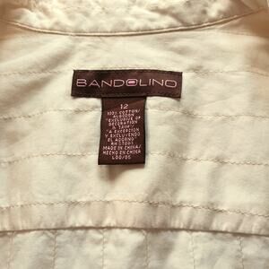 This is a cream colored Y2K Bandolino blazer in a size 12. It fits snuggly but can be worn over a cami without buttoning.