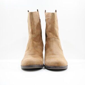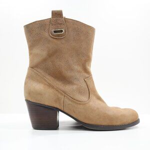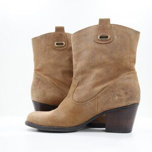 Bandolino Zephy Brown Leather 2.5" Block Heel Pull On Ankle Boots - 9.5