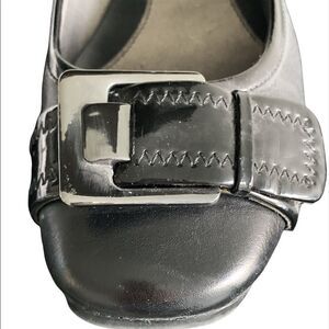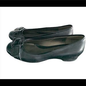 Bandolino black leather wedge flats buckle front new 6