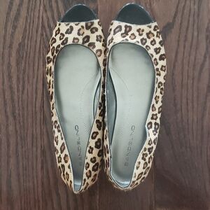 Bandolino calf hair leopard print open toe flats