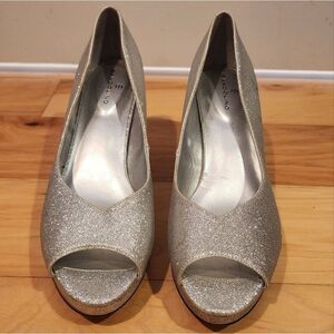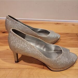 Bandolino silver sparkle open toe heels size 8.5 see photos for condition