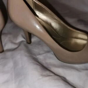Ladies 3" heels in a nude/beige color. Overall excellent pre-owned condition! Very minor wear on bottom and one tiny mark on the right shoe, top back. See pictures. Size 7 1/2.