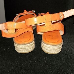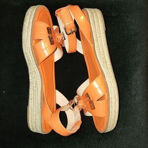 orange faux leather croc embossed strapy espadrilles