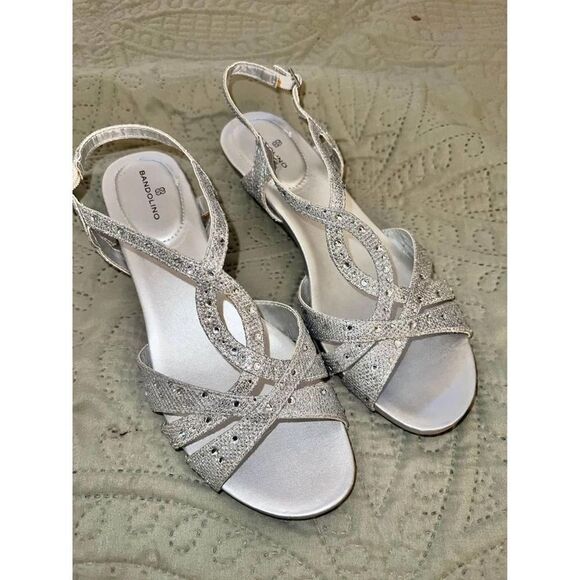 Bandolino Silver Glitter Wedge Heel Size 8.5