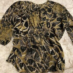 Bandolino Small Black & Tan Blouse With Beading. In good used condition. No stains or tears. SKU 598