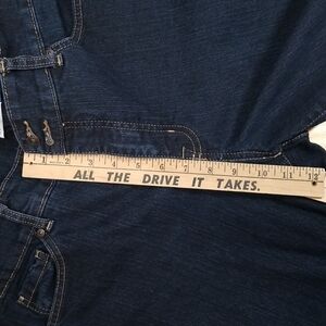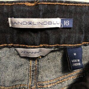Bandolinoblu Jeans, Ariana, Very dark washed, Size 16. Two buttons in front. Two back pockets with buttons and embroidery. See photos for measurements. Hems were altered by previous owners. Some fading at the ankles.
