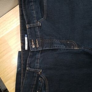 Bandolinoblu Jeans, Ariana, Very dark washed, Size 16. Two buttons in front. Two back pockets with buttons and embroidery. See photos for measurements. Hems were altered by previous owners. Some fading at the ankles.