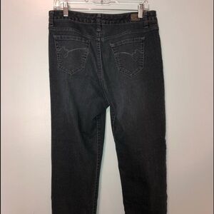 Black denim jeans with a straight leg, perfect for a casual look #y2k