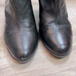 Really cute Bandolino booties high heels size 8. These are really stylish. Wide ankles. Slight scuff on one toe. Overall in great condition. Zip back. Soles in great shape.