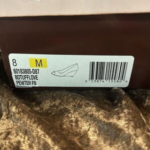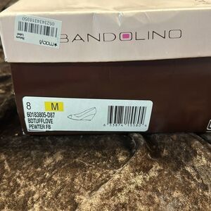 Step into style with the Bandolino glittery gray wedge heels, open toe brand new size 8, still in the box. These stunning shoes are the perfect blend of glamour and sophistication, featuring a dazzling glittery finish that is sure to turn heads. The wedge heel offers both style and comfort, making them ideal for all-day wear. Elevate your outfit with these chic and versatile heels that are perfect for any occasion. Make a statement with the Bandolino wedge heels and add a touch of sparkle to your shoe collection. Unbox a new level of elegance and style with these must-have shoes.