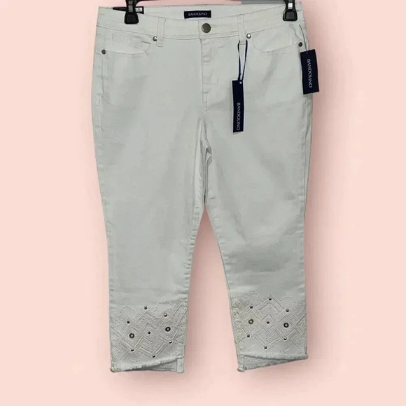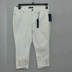 Bandolino size 10P stretch curvy white denim capris with embellished ankles NWT