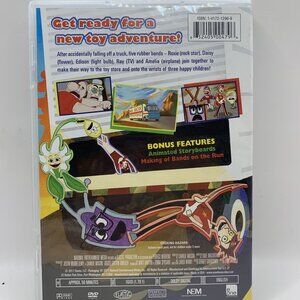 Get ready for the bounciest springiest Toy Story ever with BANDS ON THE RUN the rubber band movie! Hitting the band craze at its peak this playful animated film follows the exploits of five novelty rubber bands who find themselves deserted after accidentally falling off the back of a delivery truck. They seem lost until Edison the brainy light bulb shaped band blurts out a bright idea - Follow that truck! and together Edison Roxie (rock star) Daisy (flower) Ray (TV) and Amelia (airplane) band together to make their way to the toy store and ultimately onto the wrists of happy children! As an exclusive bonus each DVD also includes ten limited edition bands featuring the loveable characters from the movie a $5 value! Additionally there are animated storyboards and the Making of featurette.