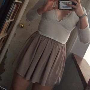 Brandy Melville light weight flowy skirt, in a light pink cream color. One size fits all. Slightly worn but in good condition. 🚫Non smoking home🚫