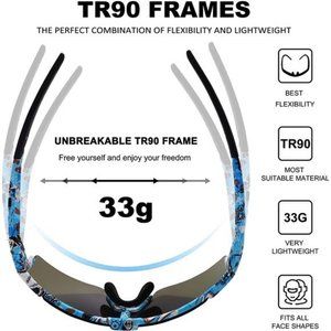 【100% UV PROTECTION COATING 】The cycling sunglasses use of polycarbonate HD coating mirror lenses.Cycling glasses have a 100% UV400 protective coating that blocks harmful UVA and UVB rays,eliminates glare and reduces eye fatigue, and protects your eyes from sand, insects, wind and sun.