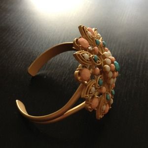 It's gold in color with a flower design with stones