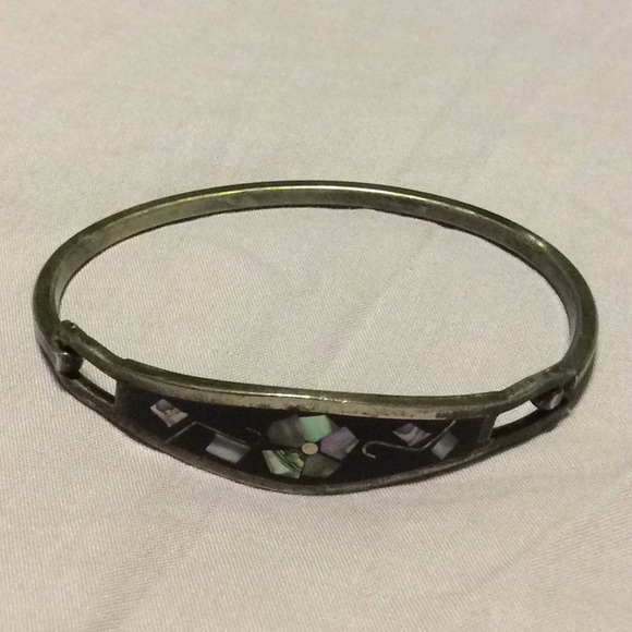 Vintage cloisonné bangle with clip closure. Circumference 7.5"
