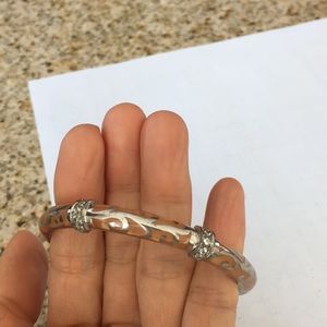 Silver and pale peach bagel with rhinestones. Magnetic closure. Good condition.