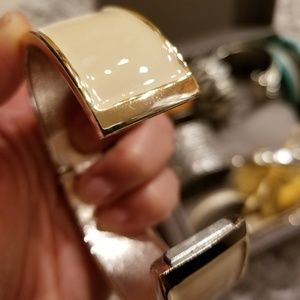 Worn once for a party: Bangle/ Cream with Silver/ High quality / Magnetic clasp. Very classy and Sleek style