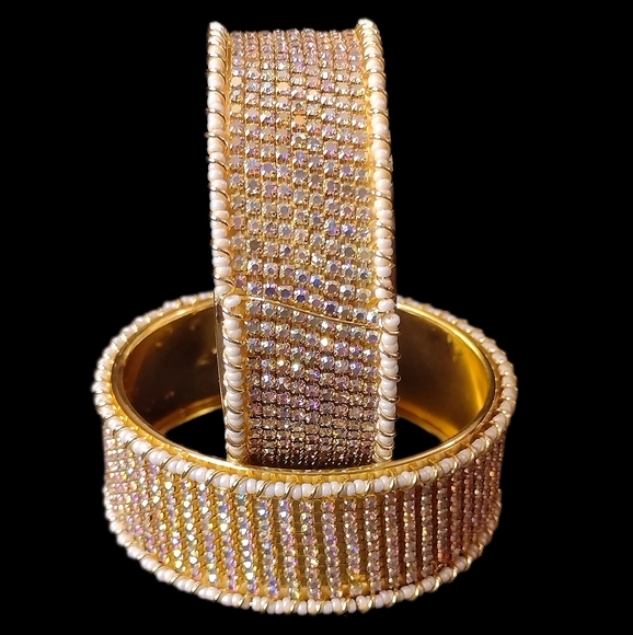 Rhinestone studded beautiful broad bangle set. size 2.8( dia)