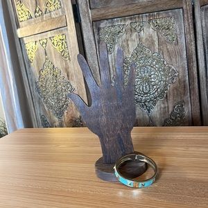 Mint Green Enameled Gold Tone Hinged Bangle, perfect stacking