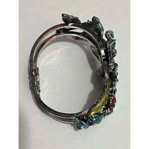 Bangle Bracelet Ladybug Butterfly Flower Clasp Metal Blue Green Artsy Statement