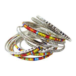 Bangle Bracelet Set -NEW-14 Pcs Multi Color Stackable Boho Chic