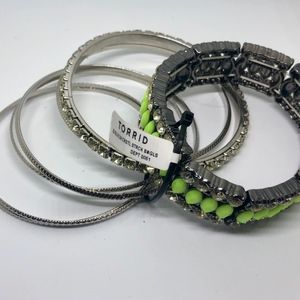 5 Different Sets of plus size bangle bracelets. Two sets are Torrid brand, the others are off-brand.