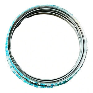 Bangle Bracelet Stack Silver and Turquoise Beaded Design Stack of 7 2.5"