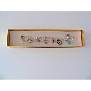 Bangle Bracelet 8 Charms Chain Link Toggle Clasp Silver Tone New In Gift Box
