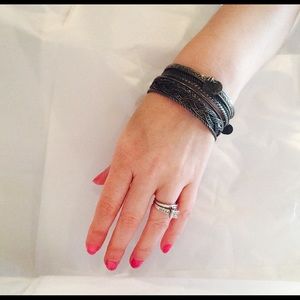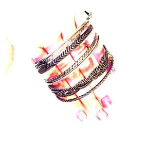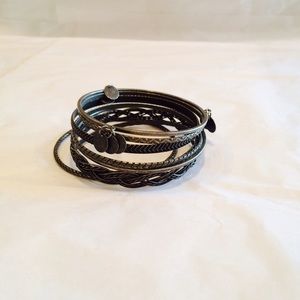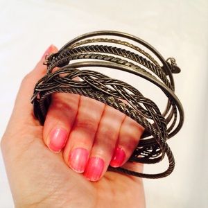 A set of 7 industrial metal bangles πŸ’• multiple textures with discs charms. Funky, Fun & In Style!