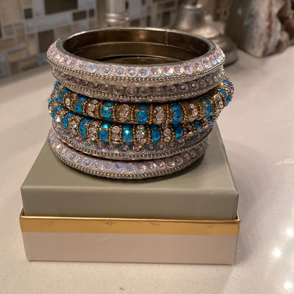 Four beautiful iridescent bangles and Two turquoise and iridescent bangles. Wear separately or as a gorgeous stack