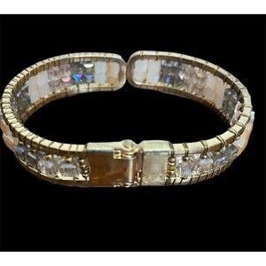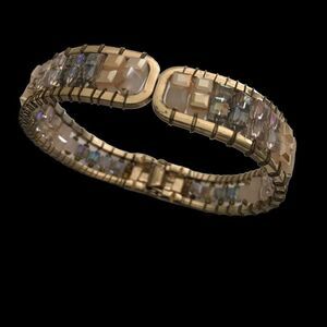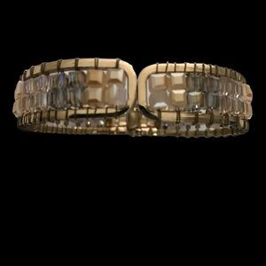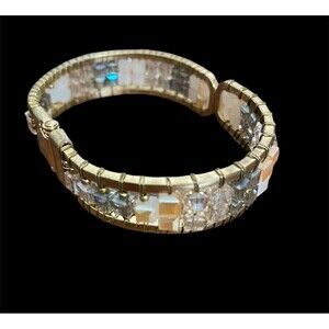Bangle Clamper Bracelet Goldtone with Multi-Color Aurora Borealis Stones AB