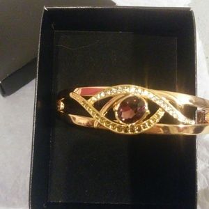 Goldtone cuff with a Gem stone on top sure to catch nearby eyes...