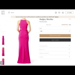 Pink Keenan Gown 92% Polyester 8% Spandex. Fully lined, hidden back zipper.