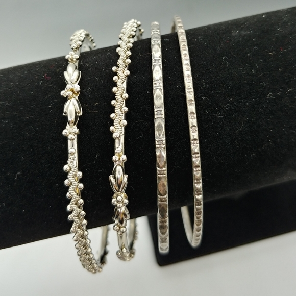 Four bangles all silver toned. Can be sold as two separate sets if you want!