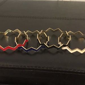 Fun stackable Zig Zag Bangles. Sold as a set of 4:Navy, Red, Ivory, Black. Wear all four, stand-alone watch accents or mix and match. Fun possibilities with this set!