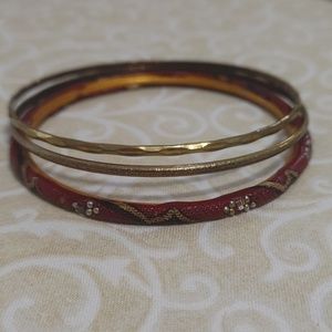 Cute Bangle set with 2 brass/gold tone bangles and one snake skin bangle. all in great condition.